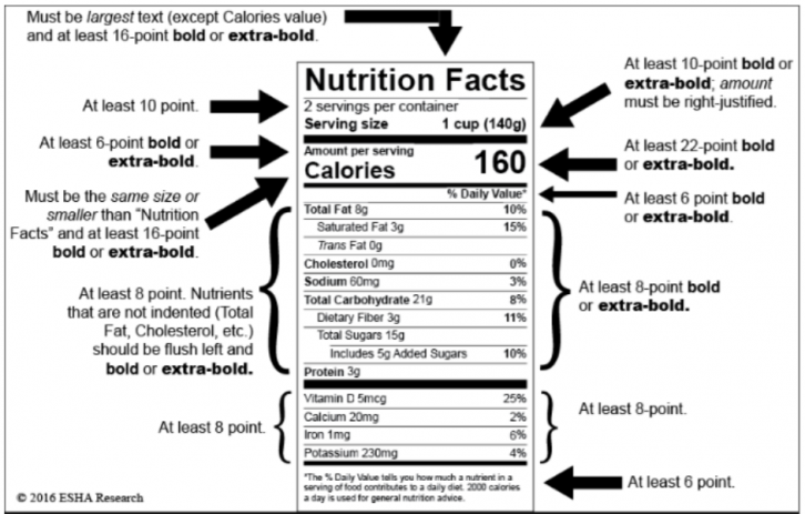 The FDA published new standards for nutritional labels on May 20, 2016. Companies must adhere to these changes by January 2020. Major changes include adjusting the calories font size and adding more nutritional values. The best approach to updating the Nutrition Facts Panel is to make a copy of the current label and adjust the design in a separate label based on the FDA guidelines. This is recommended because production and sales can continue to print the current label while necessary changes are made on a separate label to prepare for the deadline.