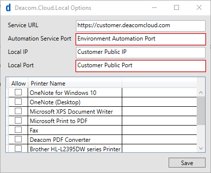 - Run Deacom.Cloud.Local.Options.exe and update the options as desired per the Setup section.