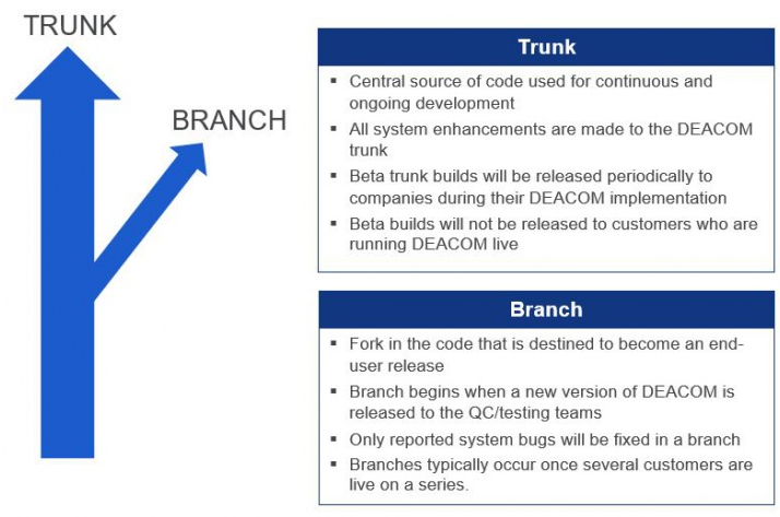 Deacom utilizes a trunk and branch build structure, as outlined in the figure below: