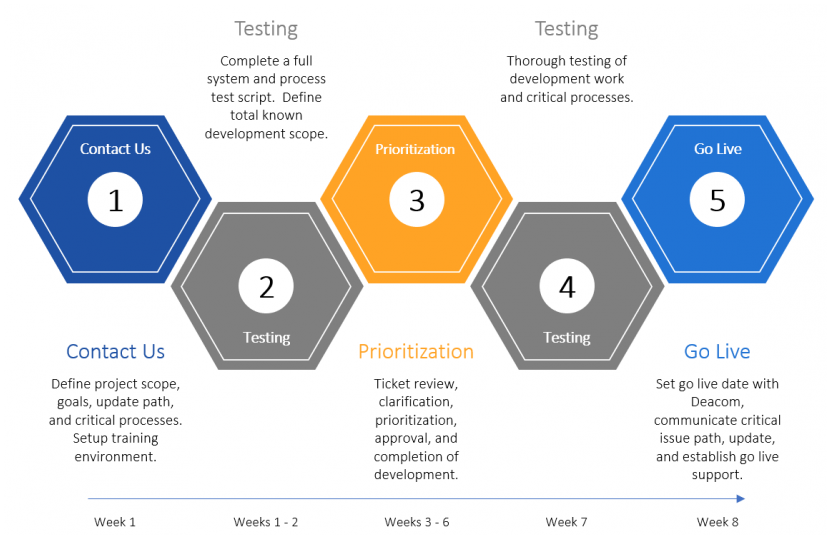 When an organization decides to perform a major DEACOM update, it is critical that the new build is thoroughly tested against that company’s business processes. A rigorous testing process helps mitigate the risk involved with installing a new version of the ERP software.