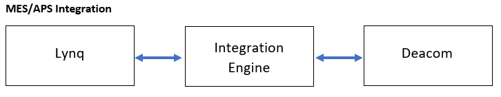 The integration engine handles mapping of Deacom API information to the MES/APS API, and vice versa.